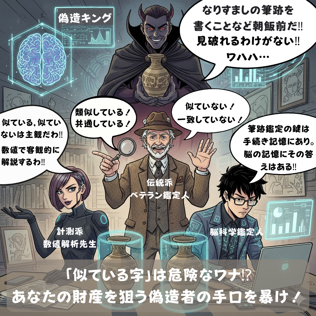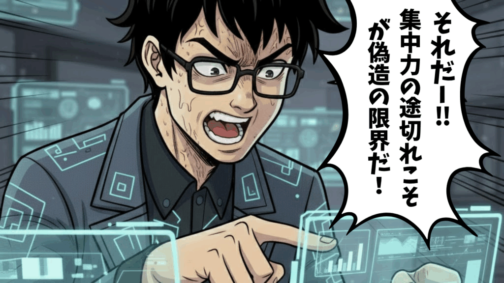 - 🧠 脳科学鑑定人: 「それだ!偽造者は意識的に真似ようとする瞬間に、普段安定しているはずの無意識の恒常性が乱れる!」