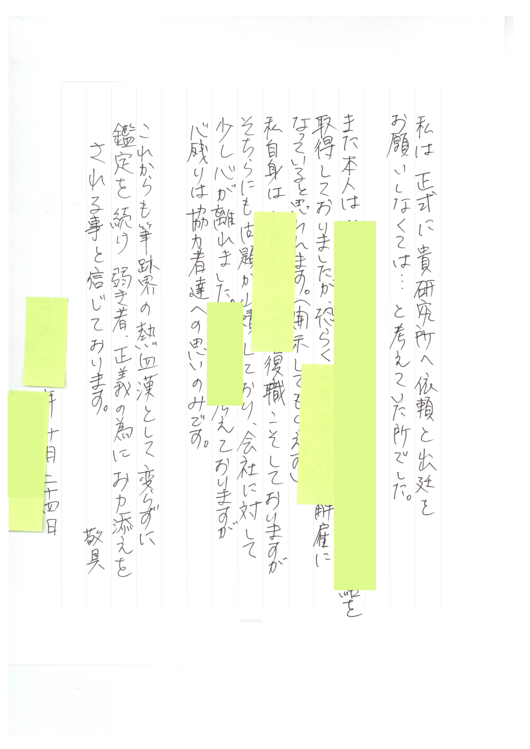 ① 筆跡鑑定結果報告書
