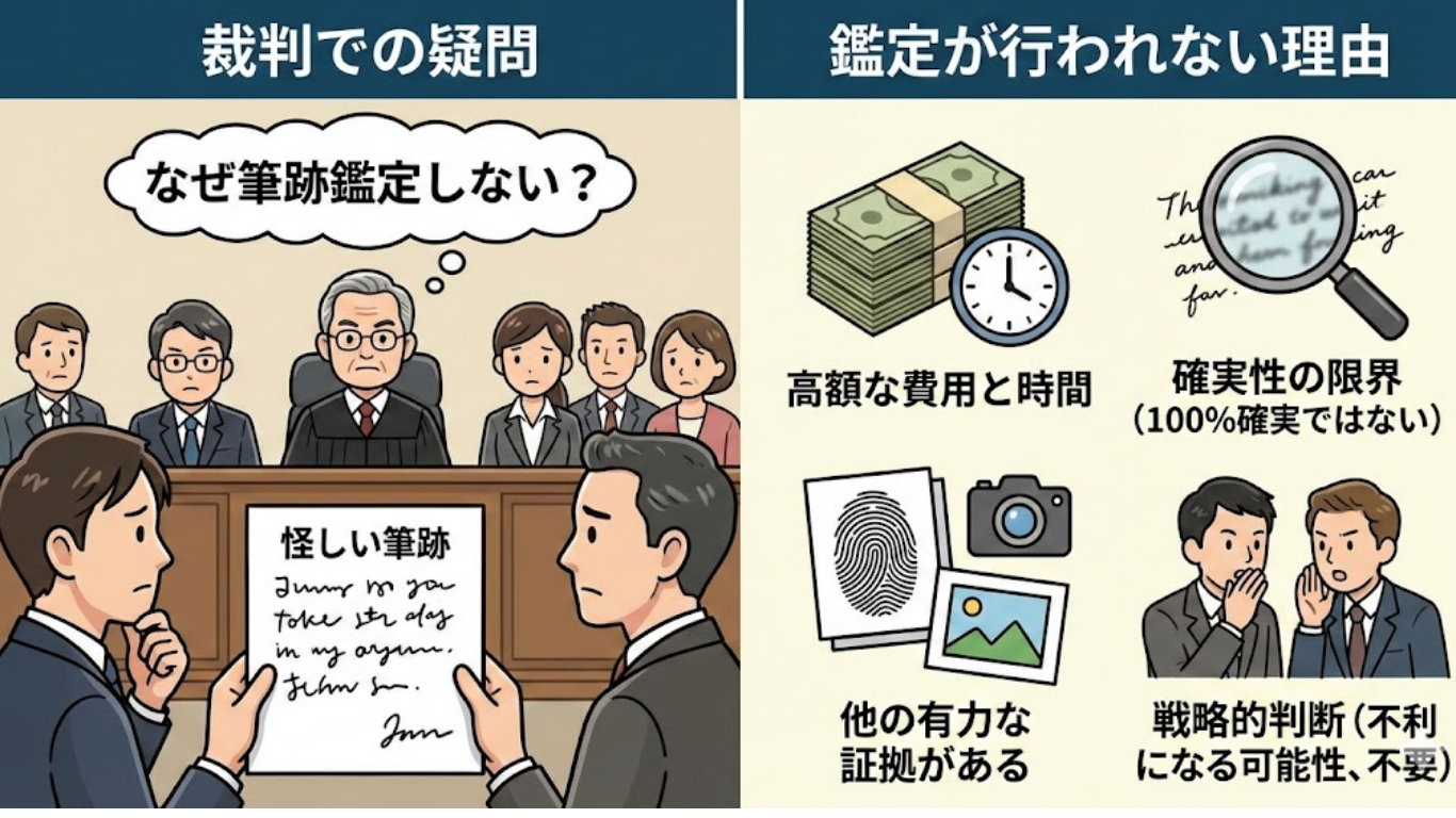 「どう見ても筆跡がおかしいのに、裁判所が鑑定を採用してくれない」 「弁護士に『筆跡鑑定は決定打にならないからやめよう』と言われた」