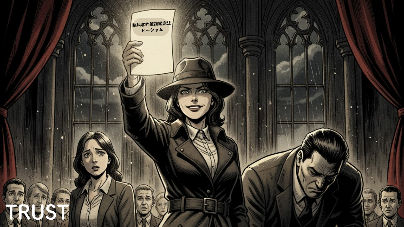 だが、こっちの弁護団は焦らない。俺たちが持ってるのは、最先端の「脳科学的筆跡鑑定法(BSHAM)」っていう、偽造者の失敗を数学で暴くヤバい武器だからな!