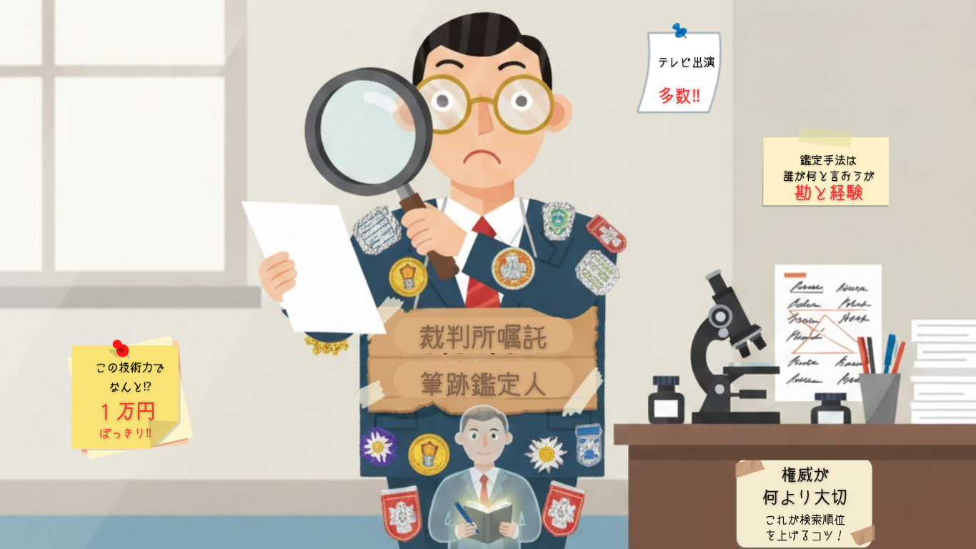遺言書の真贋、契約書の偽造など、筆跡鑑定が必要な場面で、あなたを惑わす魔法の言葉があります。それが「裁判所嘱託鑑定人」です。