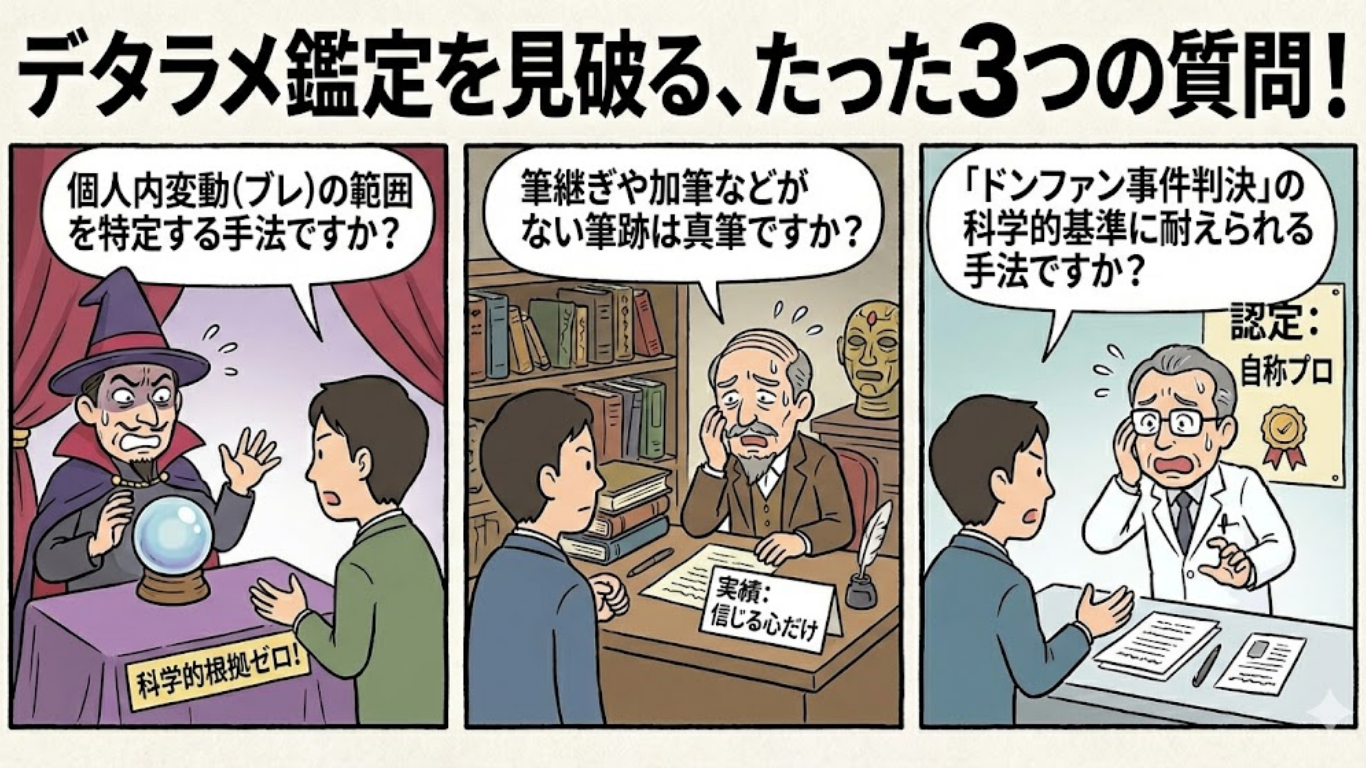 - 第1回・第2回: 裁判所はもう「経験と勘」の鑑定を信用していない。「科学的ロジック(恒常性の証明、物理的検証)」しか証拠として認めない時代が来た。