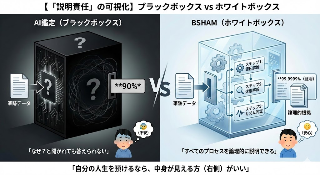今回は、最新のAI技術ですら到達できない「科学的証明」の領域――BSHAM(脳科学的筆跡鑑定法)について、その決定的な違いを解説します。