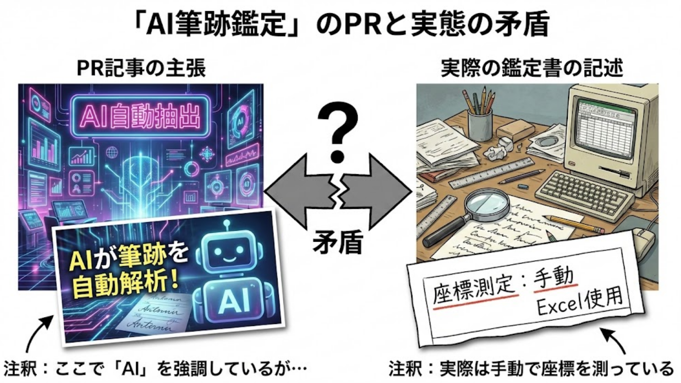 これから筆跡鑑定を依頼しようとしている皆様へ。 ウェブサイトの綺麗なデザインや、「研究所」という立派な名前、「AI」というバズワードに惑わされないでください。