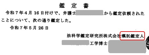 この鑑定を行った人物の肩書きは、法科学鑑定研究所の「研究員」や「正社員」ではありません。 「嘱託鑑定人」です。 これは、会社組織の内部の人間ではなく、「外部の契約パートナー(フリーランスに近い立場)」であることを意味します。