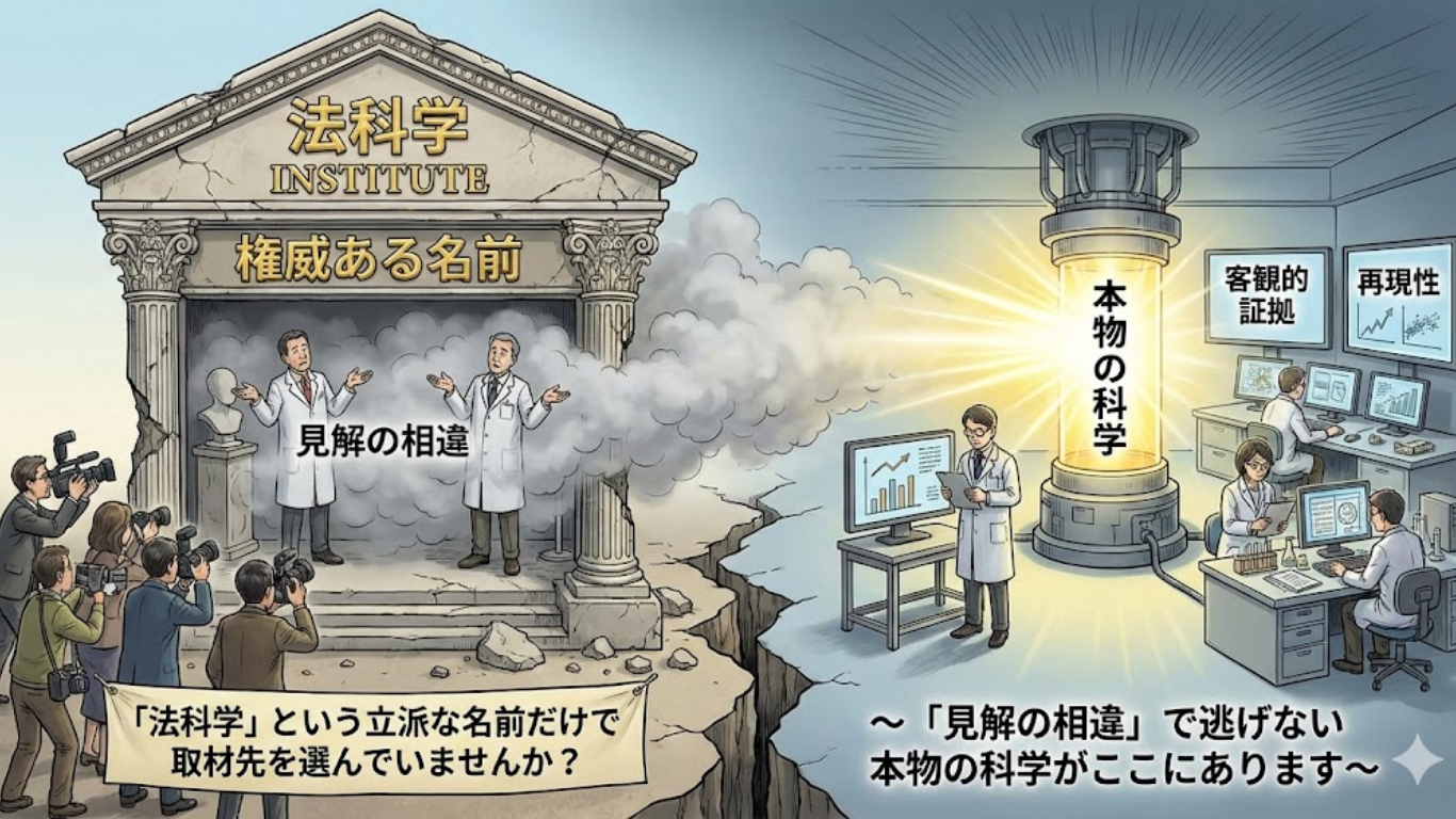 担当者様はきっとこう思ったことでしょう。 「『法科学』で『研究所』。ここなら業界の大御所に違いない。確かな科学的知見が得られるはずだ」