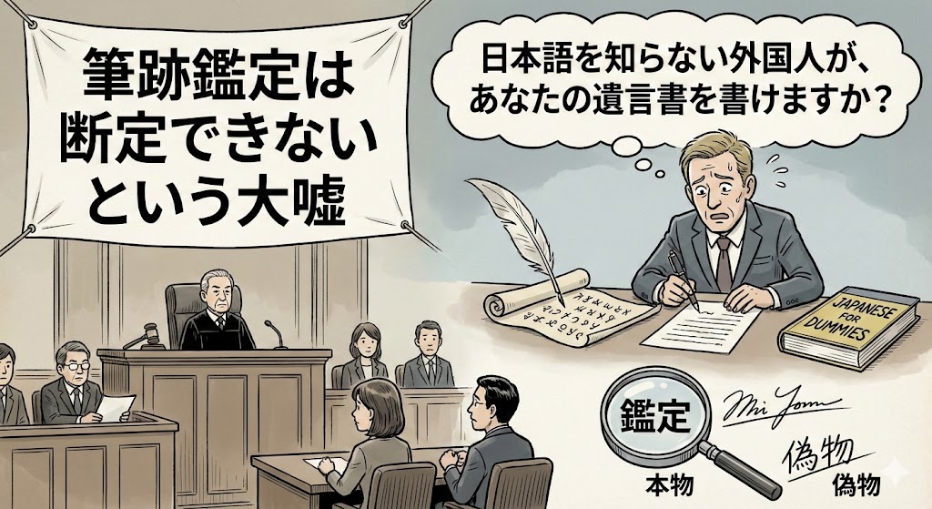 特に「遺言書」の真贋(本物か偽物か)を争う場面において、この「断定できない神話」を信じ込むことは致命的です。